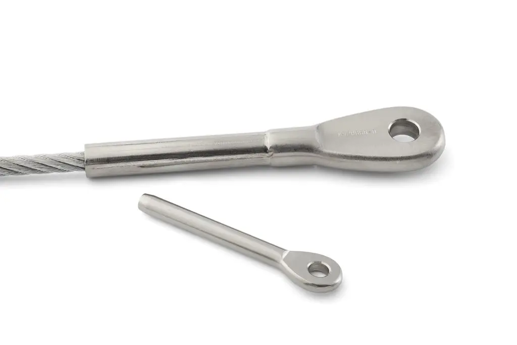 Swaged fittings are compressed directly onto the cable with a hydraulic swaging machine to create a compact, permanent termination. Cable clamps are field-installed and adjustable, but they are bulkier and more prone to installation error. For OEM assemblies and critical applications, swaged terminations are usually preferred over clamps.