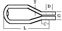 | Part # | Wire Rope Diameter (in) | Dimension L (in) | Dimension C (in) | Dimension D (in) | Dimension T (in) | Dimension G (in) |