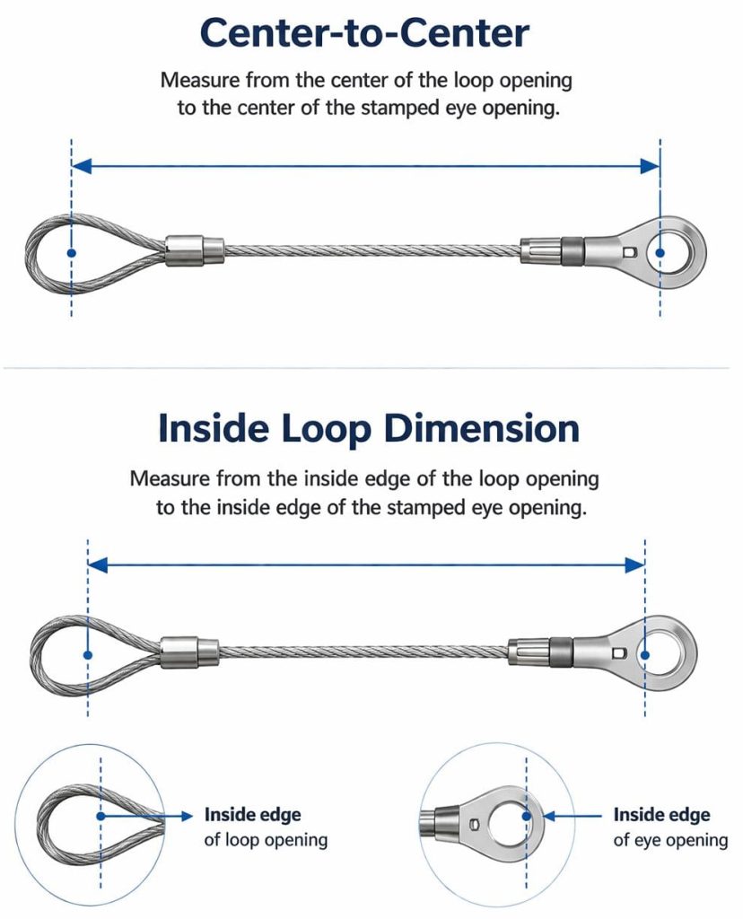 - Exact measurement points you use, such as center-to-center, inside loop dimension, or hardware-to-hardware